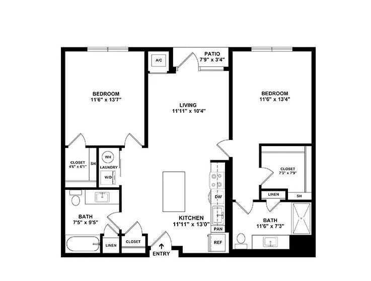 Apartment Model: 2x2SP$3,0802 Bedroom, 2 Bath, 987 sq ftAvailable Now![]()