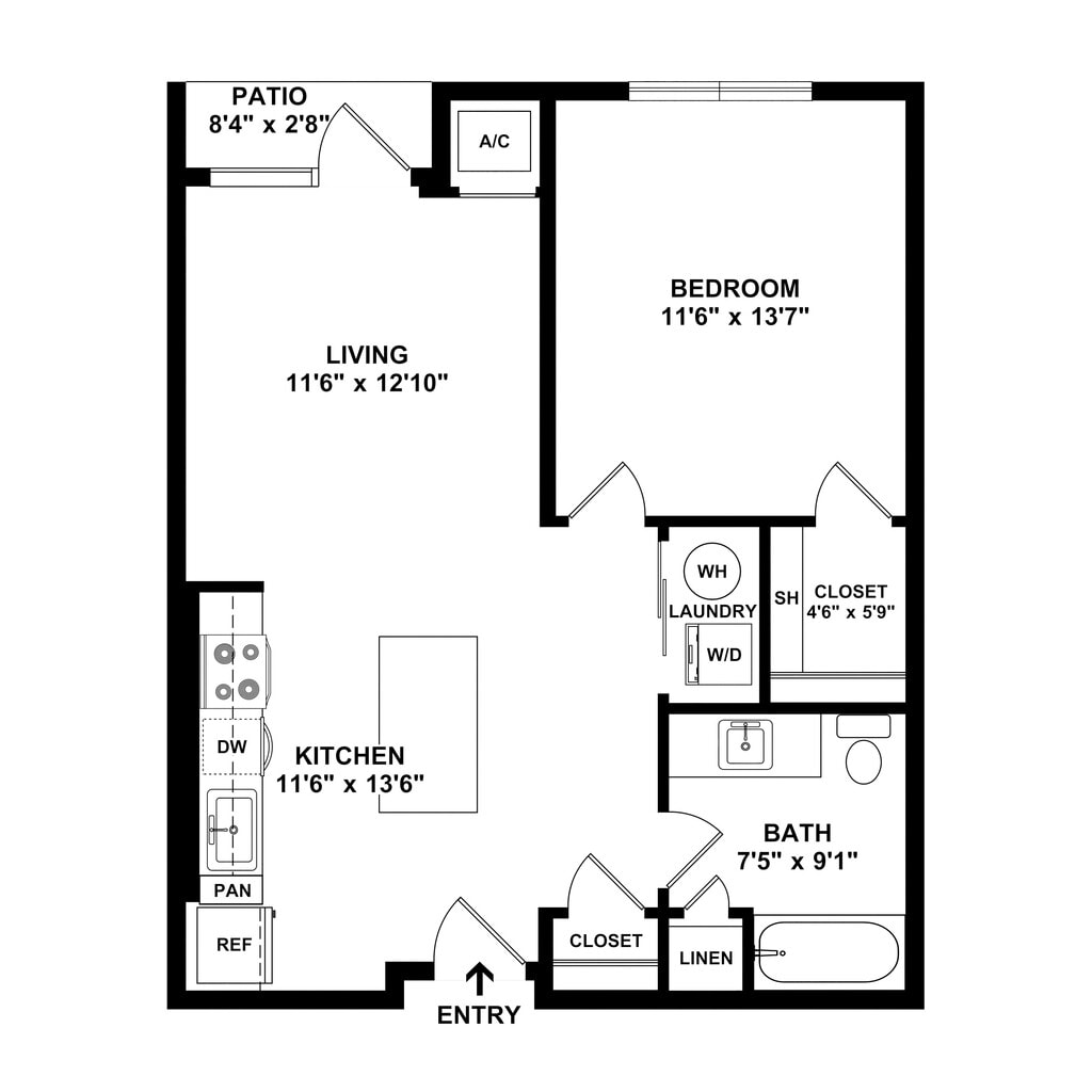1 Bed, 1 Bath, 763 sq ftAvailable NowLargest 1 BedroomThis is the largest 1 Bedroom at this PropertyModel Gallery