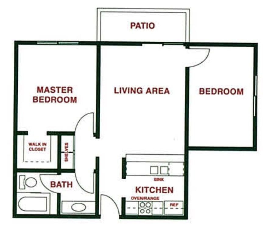 Apartment Model: Serrano 2x1 Floor PlanCall For Rates2 Bedroom, 1 Bath, 826 sq ftUnavailableFloorplansPhotos![]()