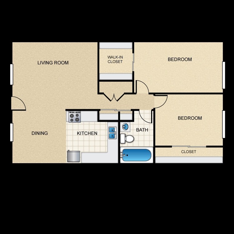 Apartment Model: 2 Bedroom$8752 Bedroom, 1 Bath, 828 sq ftAvailable Now![]()