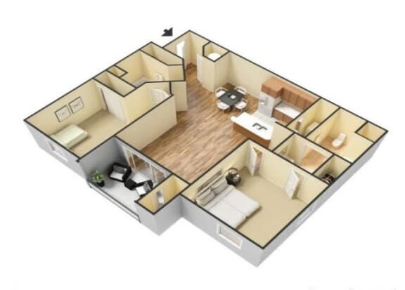 2 Beds, 2 Baths, 960 sq ftModel Gallery