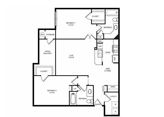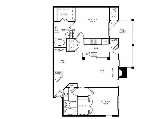 Sand Creek - Floorplan 2 Apartment Unit: 12-101Apartment Model: Sand Creek$1,8511 Bedroom, 1 Bath, 1041 sq ftAvailable NowBear Creek
