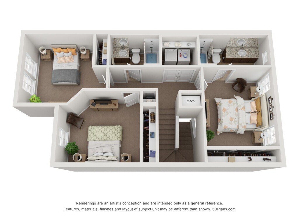 3 Beds, 2 Baths, 1093-1208 sq ftAvailable NowCheapest 3 BedroomThis is the cheapest 3 Bedroom at this PropertyModel Gallery