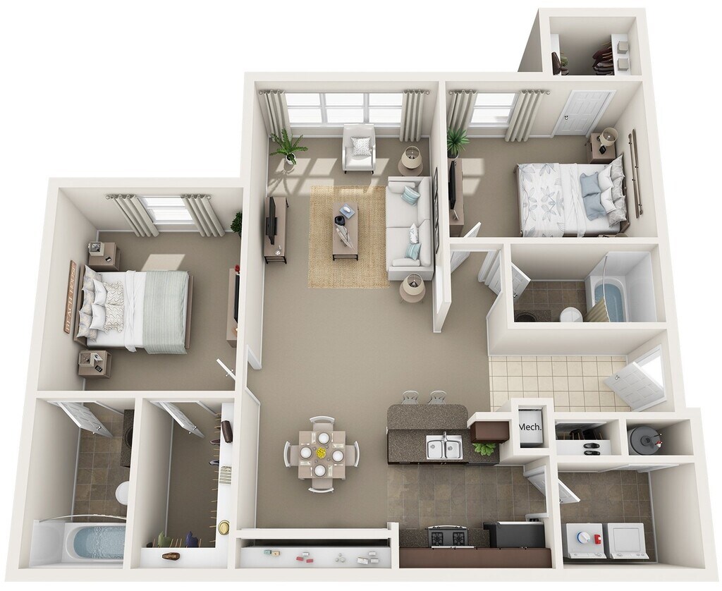 Two Bedroom Two Bath - Floorplan 1 3 Bedrooms