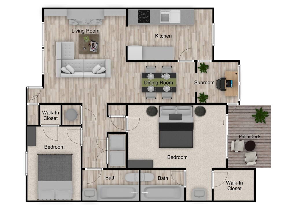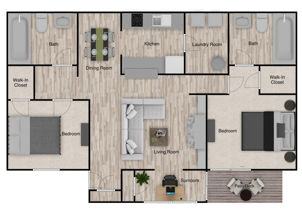 2 Beds, 2 Baths, 1355 sq ftAvailable NowCheapest 2 BedroomThis is the cheapest 2 Bedroom at this PropertyModel Gallery