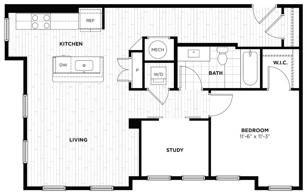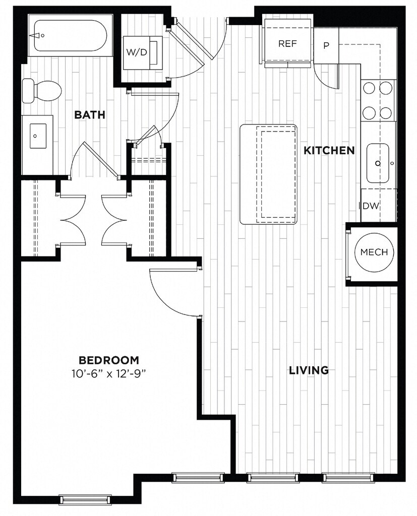 Studio, 1 Bath, 618 sq ftAvailable NowLargest StudioThis is the largest Studio at this PropertyModel Gallery