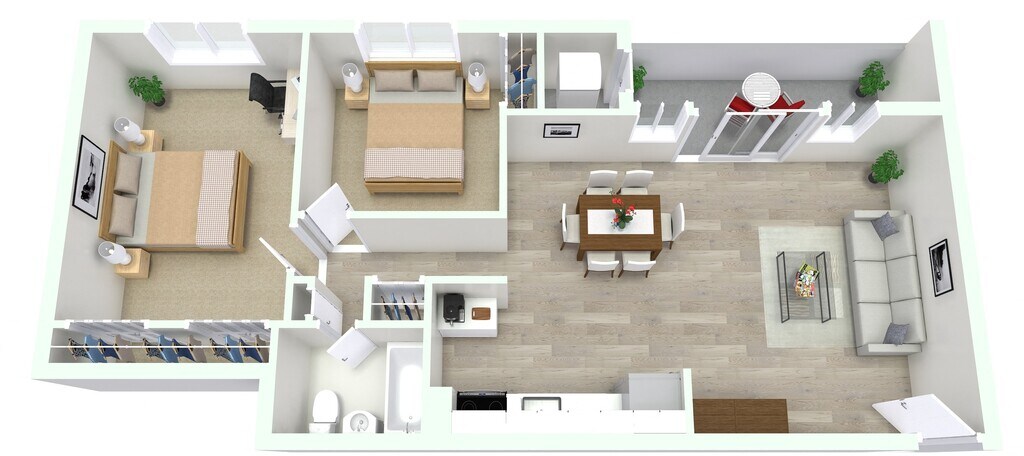 Apartment Model: 2 Bed 1 BathFrom $1,4502 Bedroom, 1 Bath, 840 sq ftAvailable Now![]()