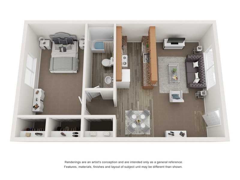 1 Bed, 1 Bath, 608 sq ftAvailable NowModel Gallery