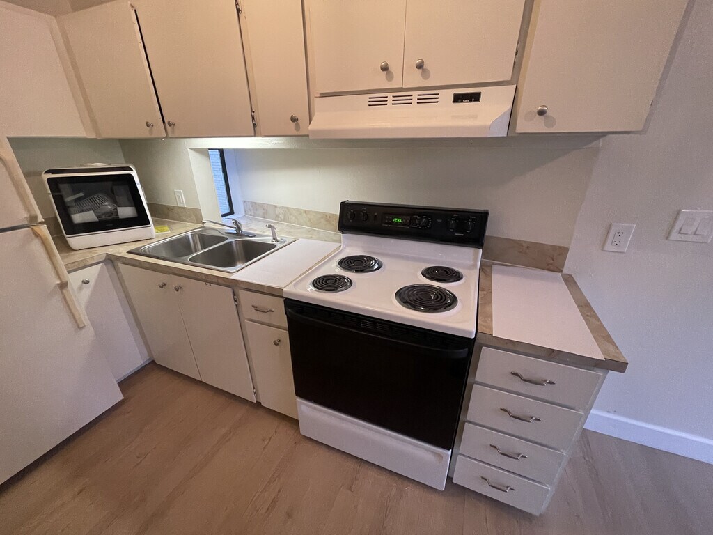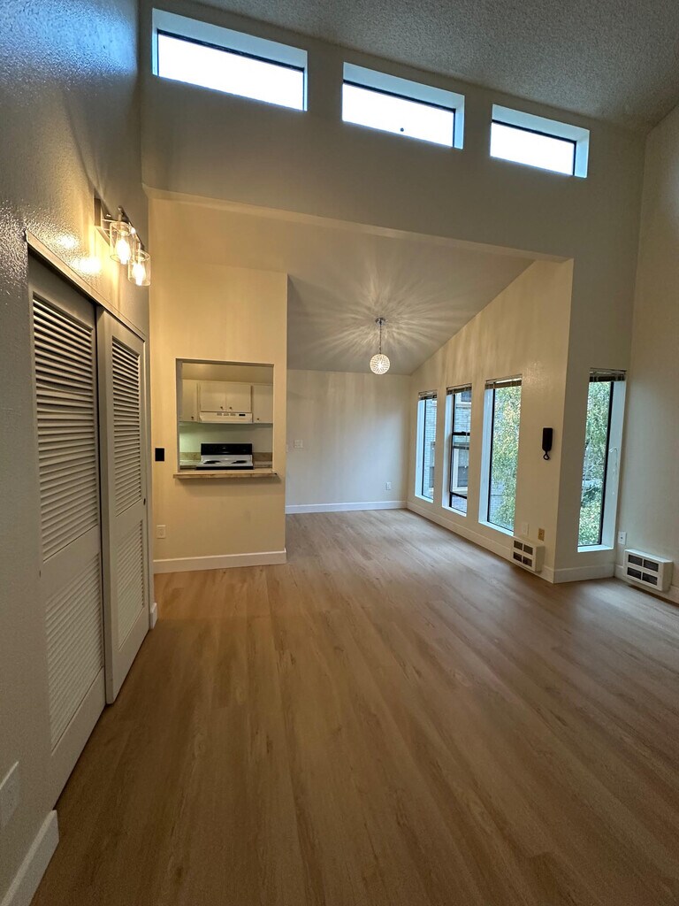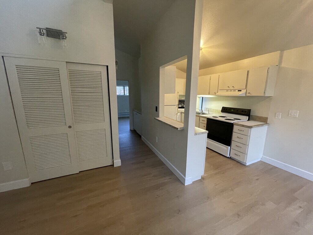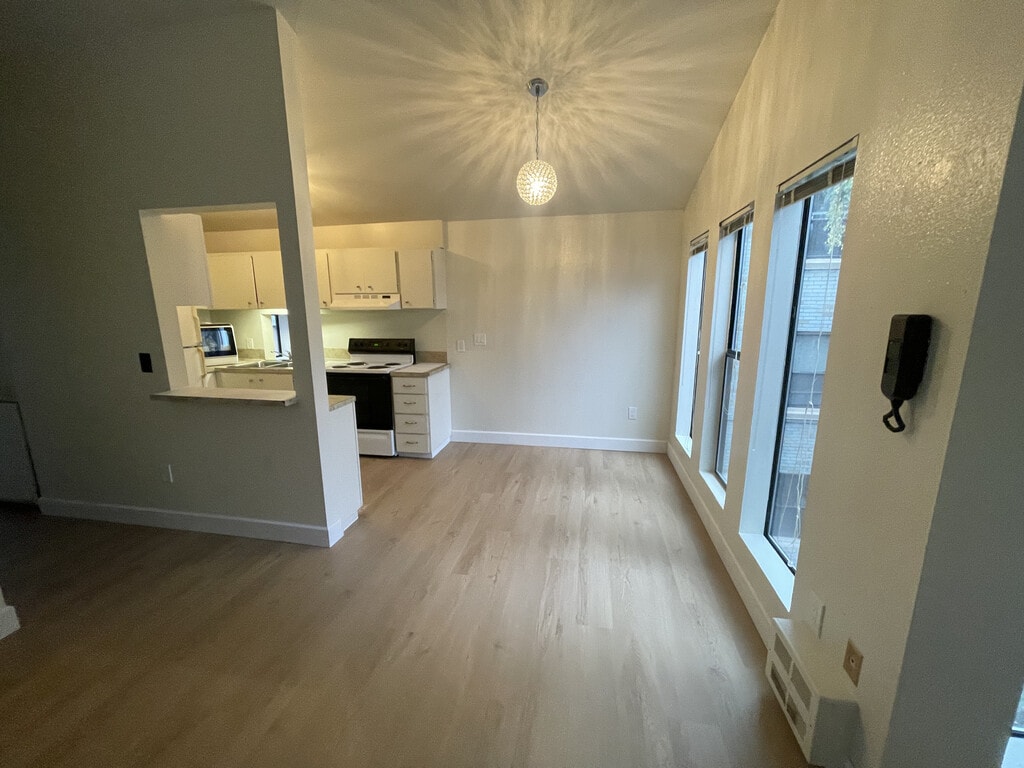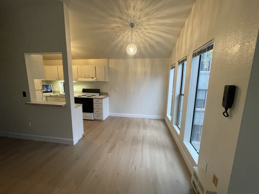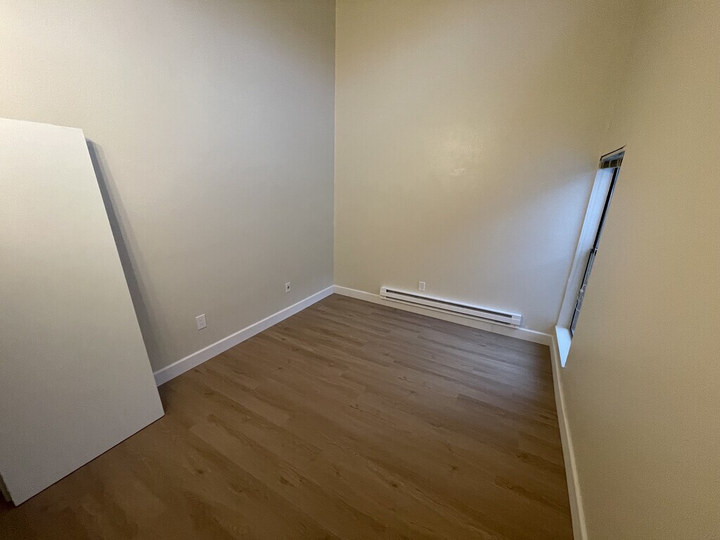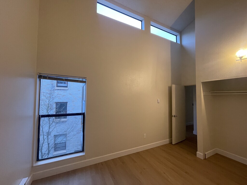 This 2-bedroom 1-bathroom unit features: - New floor, new fixtures, remodeled unit - Top Floor Unit (3rd floor) - High Ceilings - Open living room / kitchen area with big windows and lots of cabinets - Full kitchen with fridge and stove - Cats are welcome with additional deposit and $25 pet rent - Assigned Parking is $95 per month - Building storage units available for $25 per month - Tenant pays electric for the Unit and share of common utilities