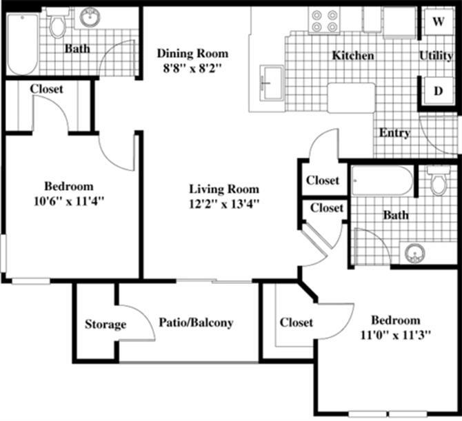 2 Beds, 2 Baths, 954 sq ftAvailable NowModel Gallery