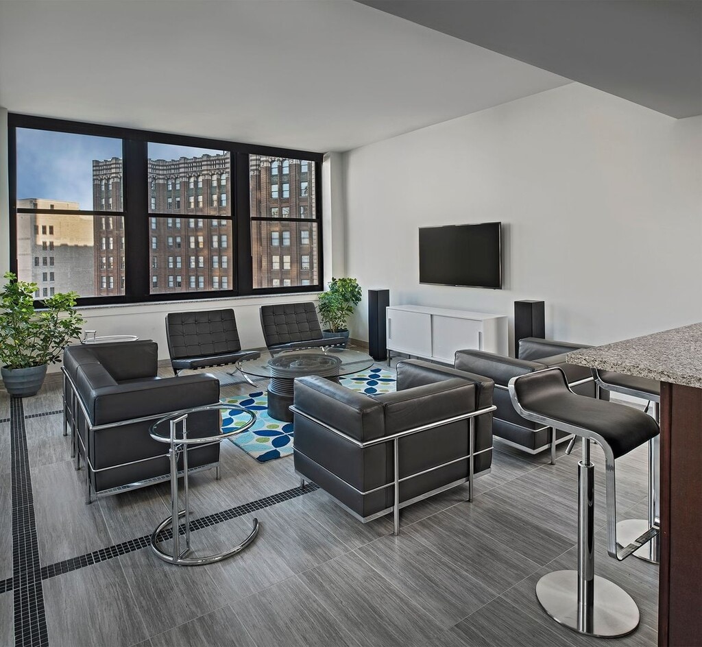 Centrally located in the highly desirable downtown neighborhood of Capitol Park, Capitol Park Lofts is at the epicenter of premier luxury living experiences. Detroit’s comeback is finer and supremely reestablished, as it is surrounded by culturally cool dynamic communities: Brush Park, Campus Martius, Corktown, and Midtown. Capitol Park Lofts offers 66 luxury residences newly renovated and redesigned into studios, one and two bedroom floor plans. The merriment of Detroit living meets in our downtown neighborhood of sensational rooftop views, 5-star eateries, retail shopping, markets, nightlife, theaters and stadiums. Reserve an appointment to tour our available luxury residences and additional features today! We currently offer virtual and traditional tours by appointment.