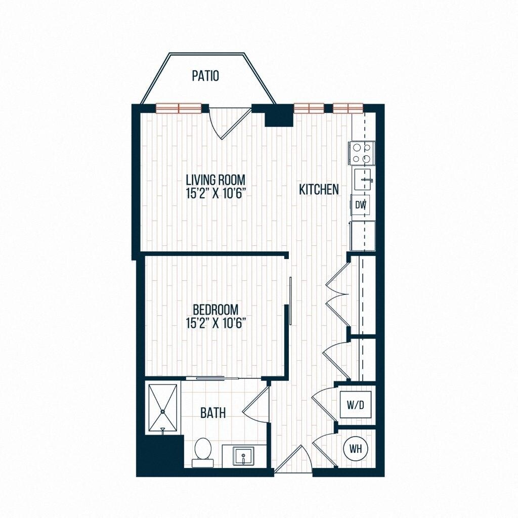 D9 - Floorplan 1 Apartment Unit: 210Apartment Model: D9Studio, 1 Bath, 613 sq ftAvailable NowFloorplan D3