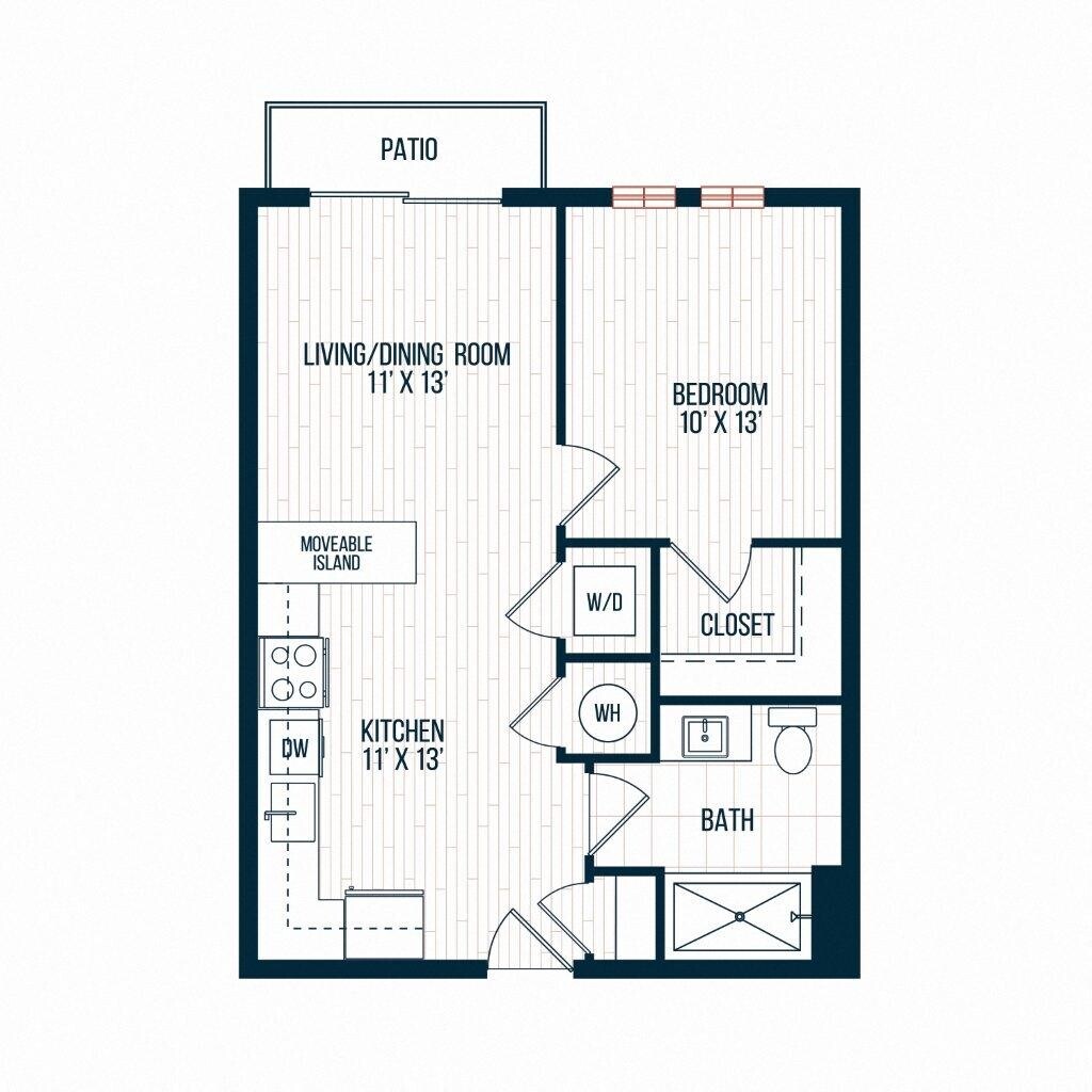 D11 - Floorplan 1 Apartment Unit: 030Apartment Model: D11Studio, 1 Bath, 365 sq ftAvailable NowFloorplan D5