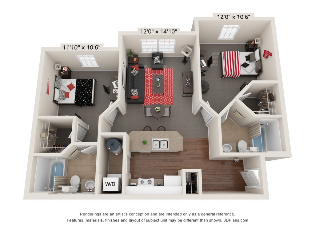 2 Beds, 2 Baths, 900 sq ftAvailable NowModel Gallery
