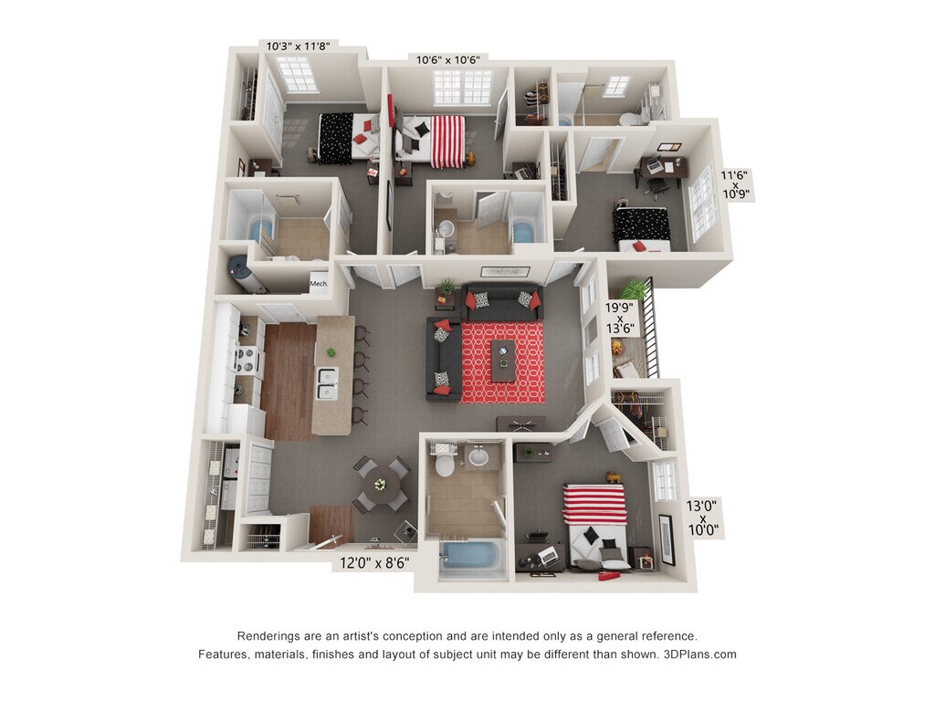 Apartment Model: Four Bedroom MixFrom $5054 Bedroom, 4 Bath, 1547 sq ftAvailable NowFloorplansPhotos![]()