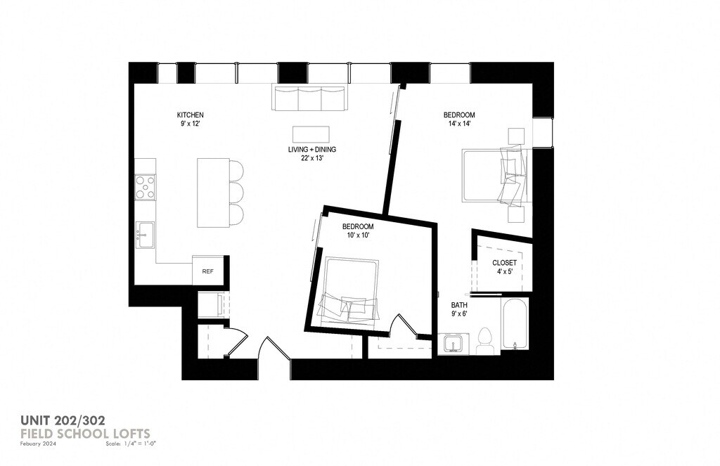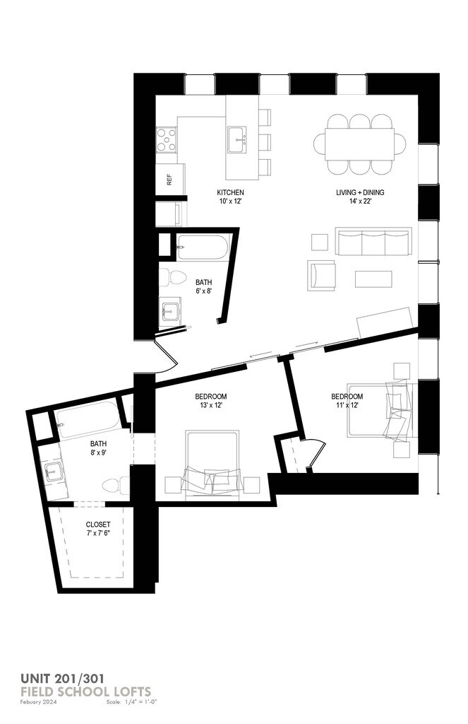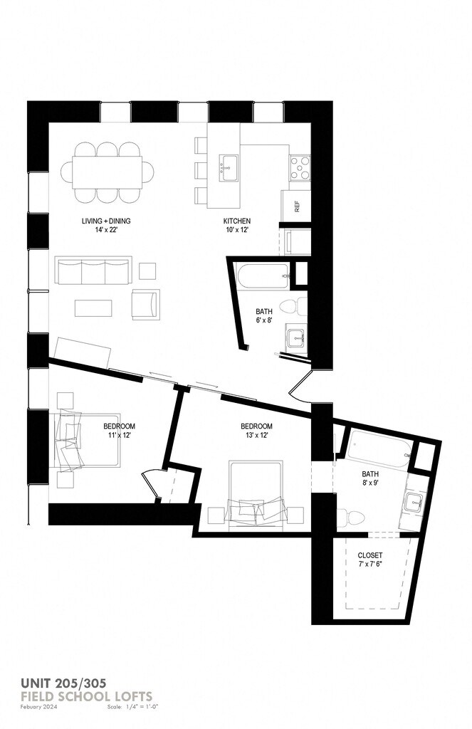 301 - Floorplan 1 Apartment Unit: 301Apartment Model: 3012 Bedroom, 2 Bath, 1093 sq ftAvailable NowFloorplan 202