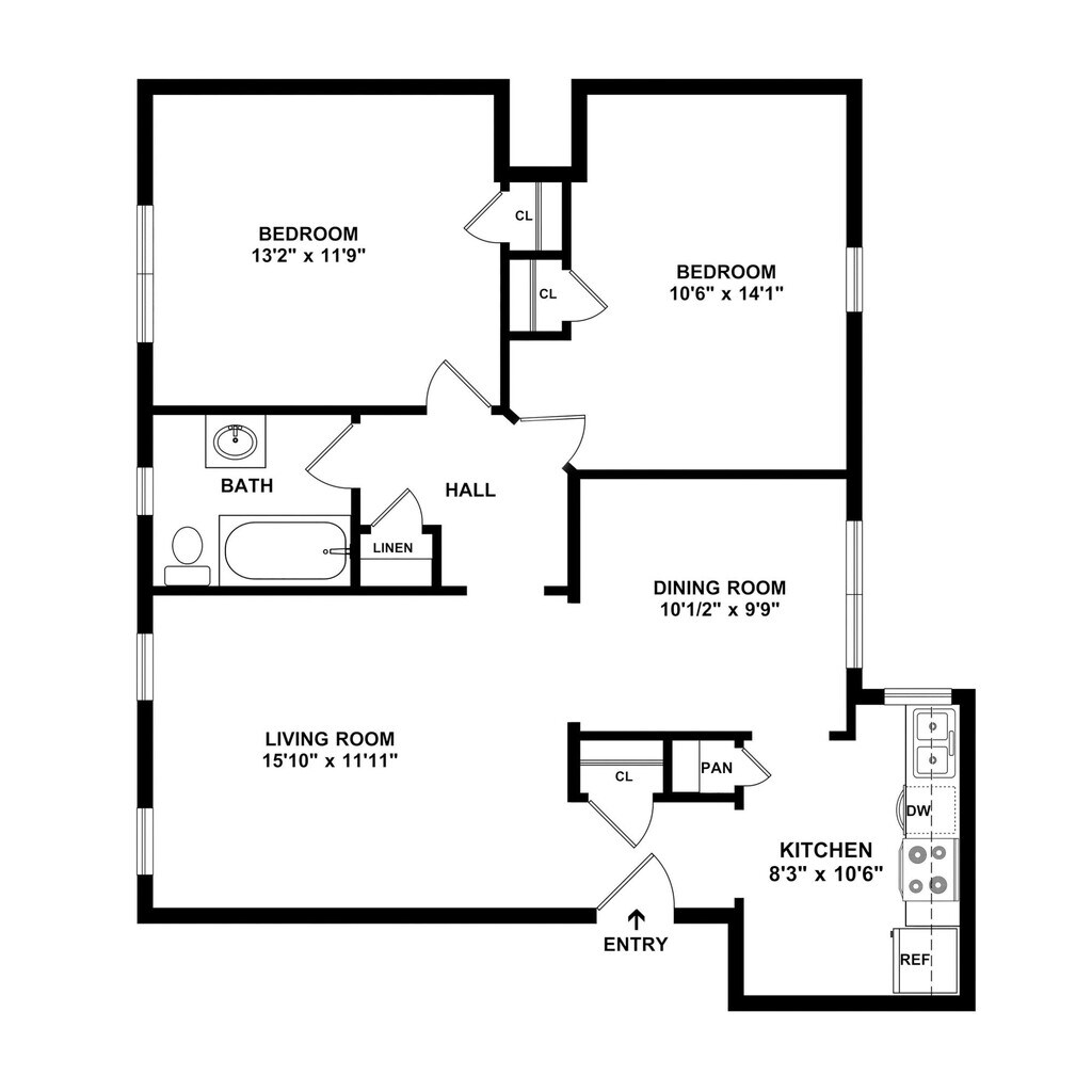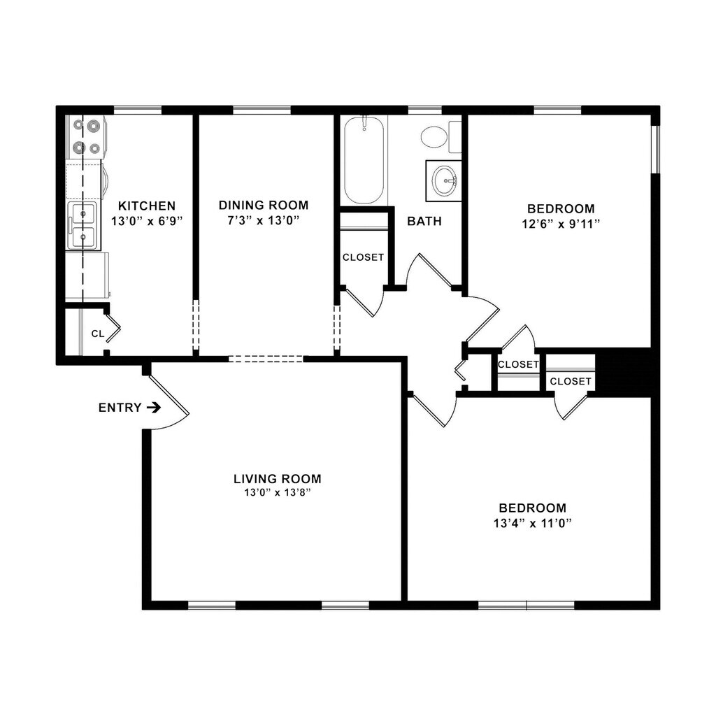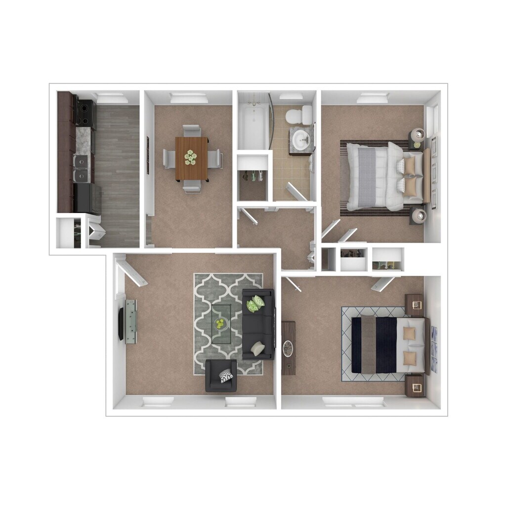 2 Beds, 1 Bath, 1175 sq ftAvailable NowLargest 2 BedroomThis is the largest 2 Bedroom at this PropertyModel Gallery