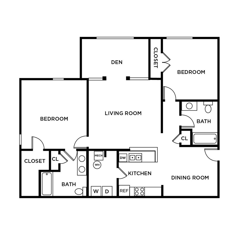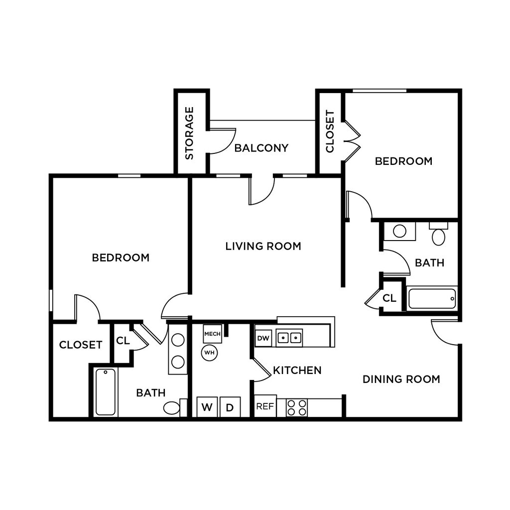 Apartment Model: Two Bedroom 2 Bath - 1,066 sqftFrom $1,2302 Bedroom, 2 Bath, 1066 sq ftAvailable Now![]()