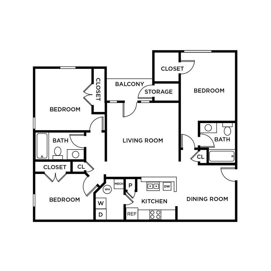 Apartment Model: One Bedroom - 784 sqftFrom $1,0751 Bedroom, 1 Bath, 784 sq ftAvailable Now![]()
