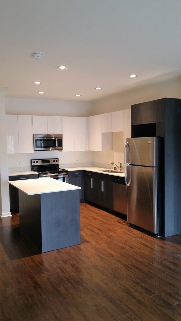 Open Kitchen with Large Island Euro Style Cabinets w/ Quartz Countertops Stainless Steel Appliances Wide-Plank Flooring Stone Bathroom with Euro Style Vanity w/ Quartz Countertops In-Unit Washer Dryer LED Lighting Fiber-to-Premise (FTTP) Technology Geothermal Heating and Cooling Indoor Heated Parking with Storage Available Pet Friendly Building Close to Shopping and Bike Trails Walk to Metra Station (with stops at O’Hare and Chicago CBD)