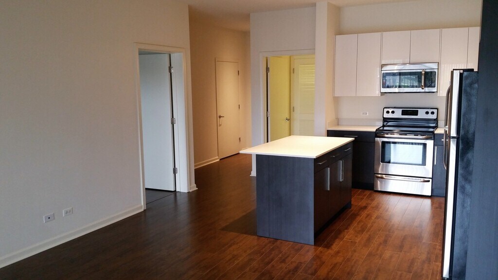 Open Kitchen with Large Island Euro Style Cabinets w/ Quartz Countertops Stainless Steel Appliances Wide-Plank Flooring Stone Bathroom with Euro Style Vanity w/ Quartz Countertops In-Unit Washer Dryer Balconies (5’x11’) off Living Room and Master Bedroom LED Lighting Fiber-to-Premise (FTTP) Technology Geothermal Heating and Cooling Indoor Heated Parking with Storage Available Pet Friendly Building Close to Shopping and Bike Trails Walk to Metra Station (with stops at O’Hare and Chicago CBD)