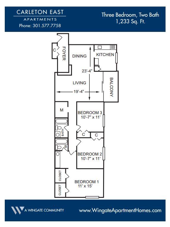 Price Availability Date Unit Sq Ft Deposit From $1,940 Available Now Three Bedroom 1233 sq ft $900 Model Amenities and Features