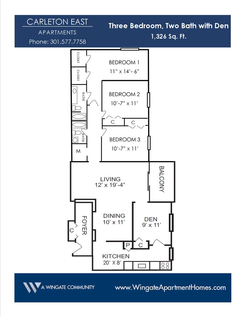 Apartment Model: Three Bedrooms and Den$2,3553 Bedroom, 2 Bath, 1326 sq ftAvailable Now![]()
