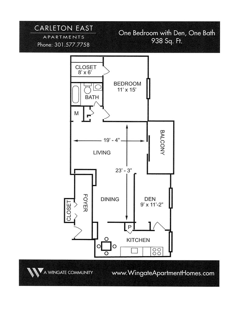 One Bedroom and Den - Floorplan 1 One Bedroom