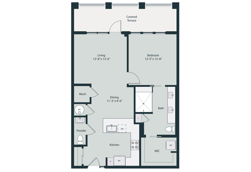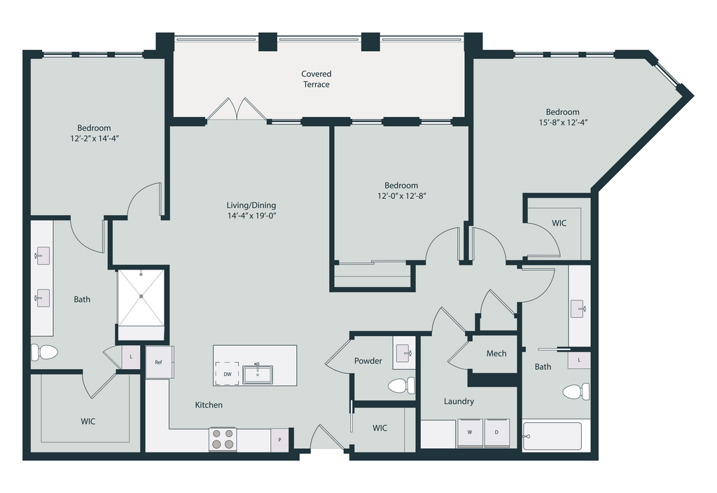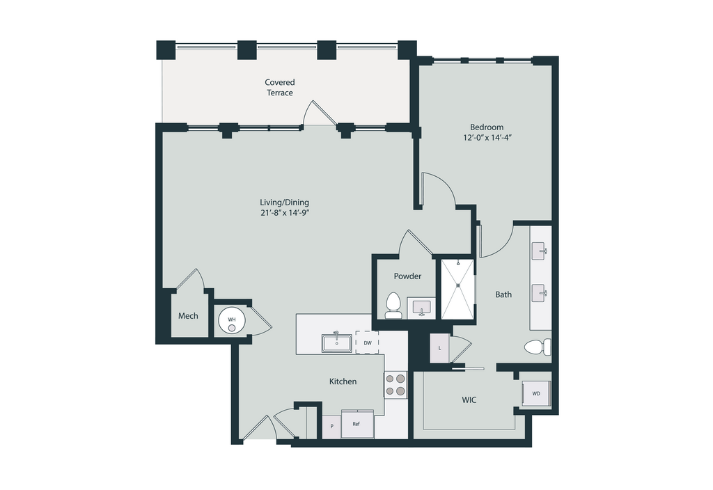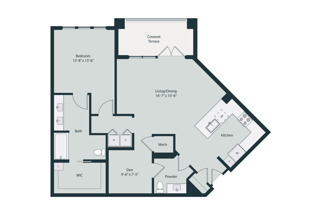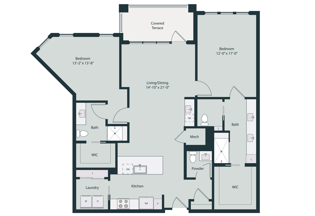 1 Bed, 1.5 Baths, 1200 sq ftLargest 1 BedroomThis is the largest 1 Bedroom at this PropertyModel Gallery