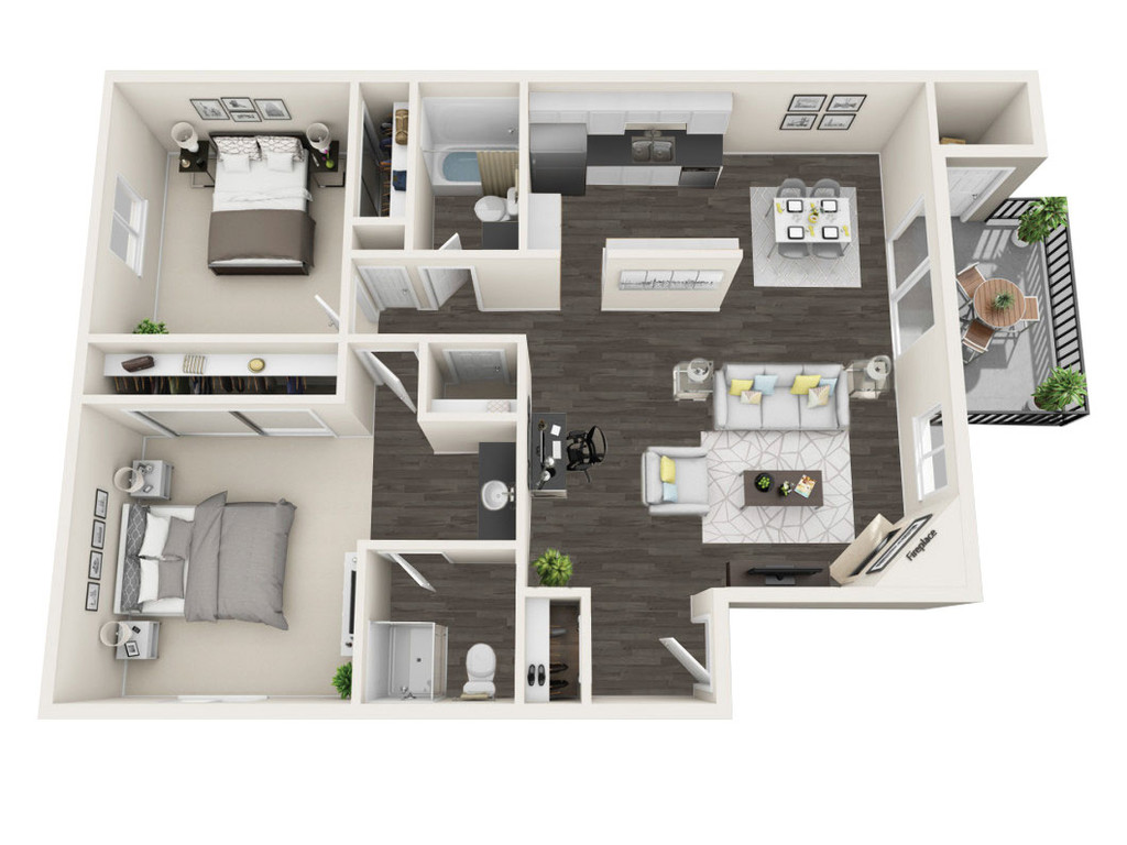 2 Beds, 2 Baths, 1015 sq ftAvailable NowModel Gallery