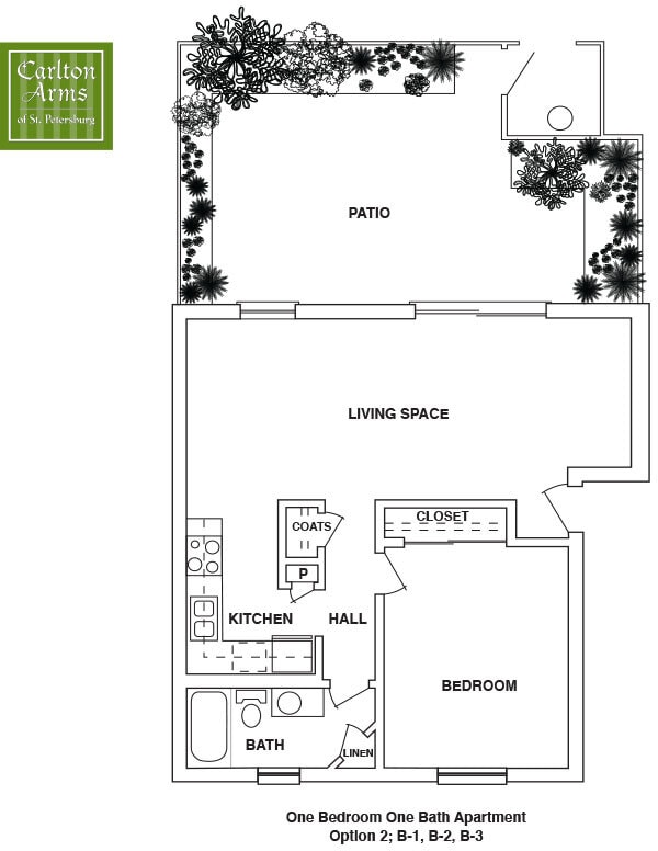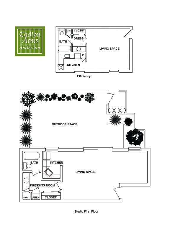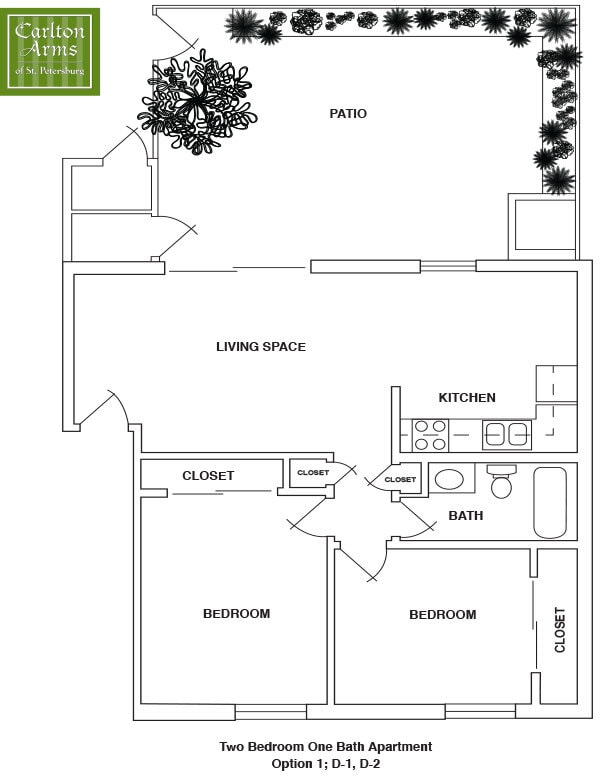 Carlton Arms of St. Petersburg offers Studio to 2 Bedroom apartments having 441–1,429 sqft. Here is the current pricing and availability: