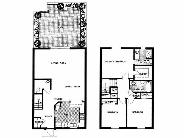 2 BR Townhome (1.5 or 2.5 Bath) - Floorplan 2 3 Bedrooms