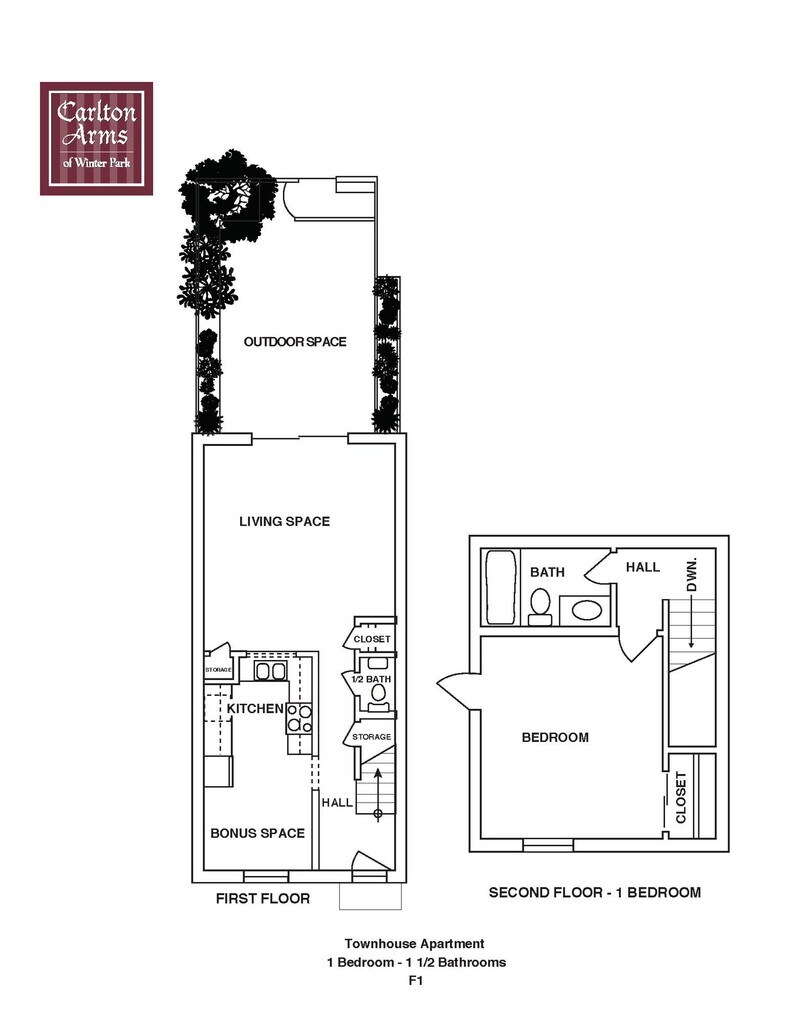 F1 Townhome - Floorplan 1 2 Bedrooms