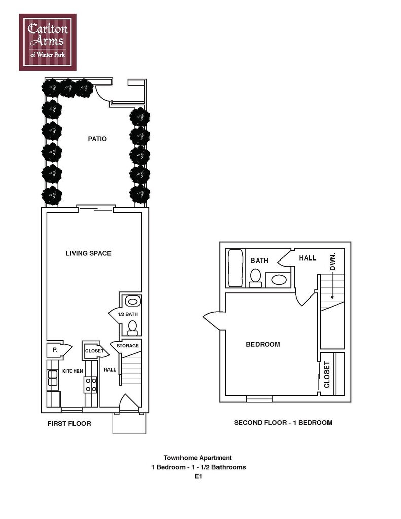 Apartment Model: E1 Townhome$1,3571 Bedroom, 1.5 Bath, 720 sq ftUnavailable![]()