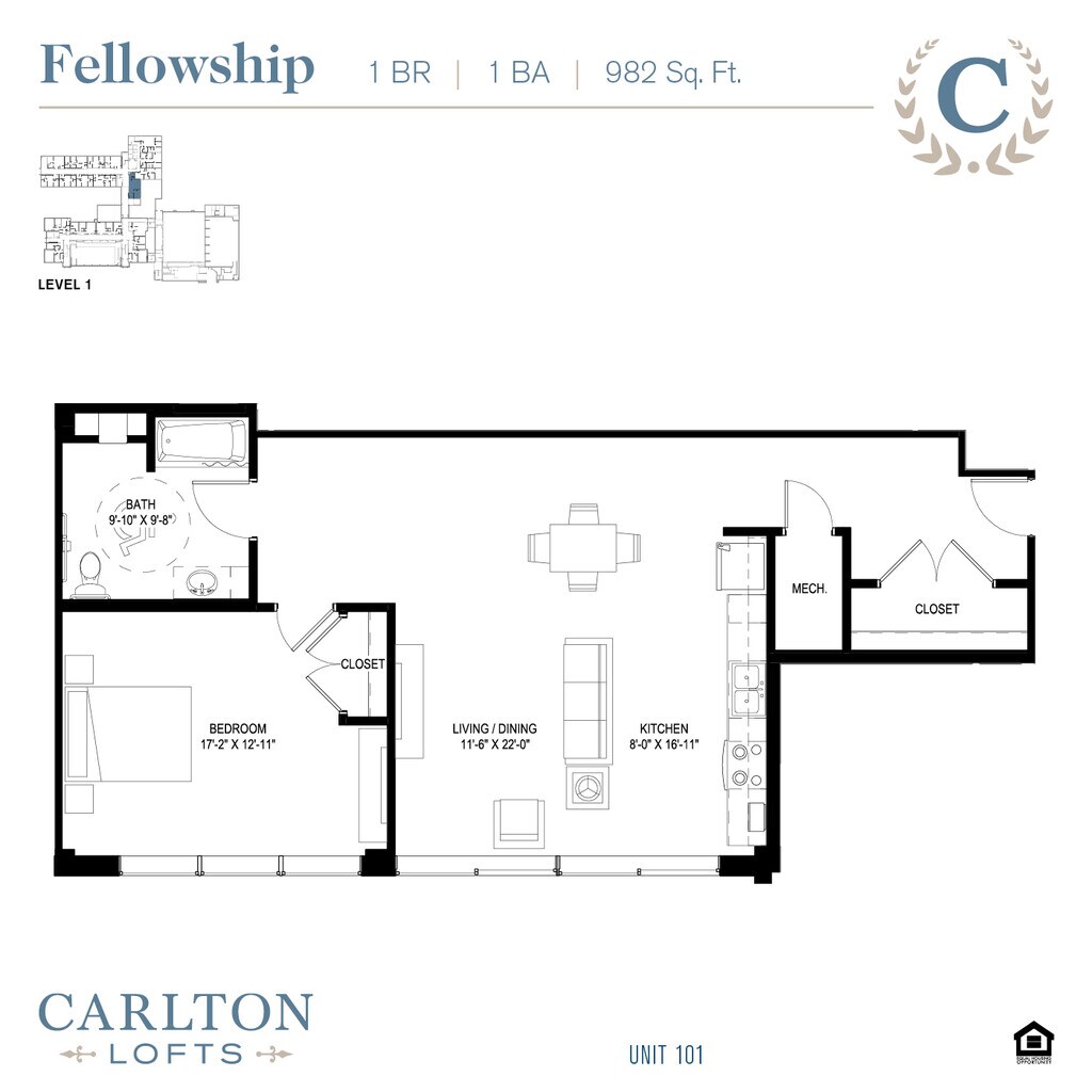 1 Bed, 1 Bath, 711-982 sq ftModel Gallery