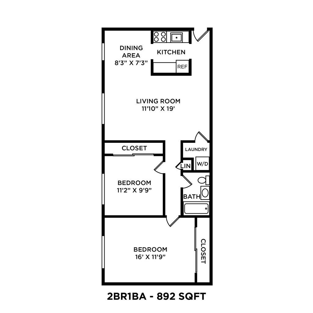 2 Beds, 1 Bath, 892 sq ftAvailable NowModel Gallery