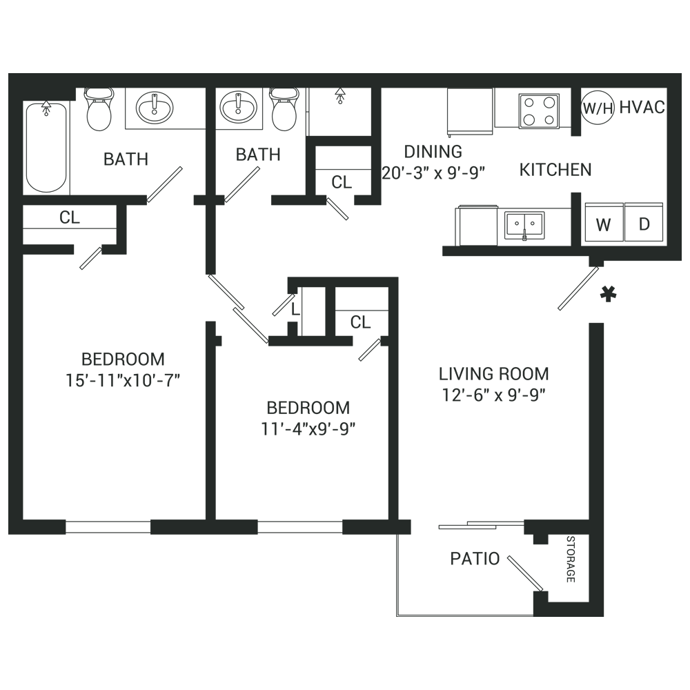 Apartment Model: 2-MastersuiteFrom $1,5992 Bedroom, 2 Bath, 1014 sq ftAvailable Now![]()