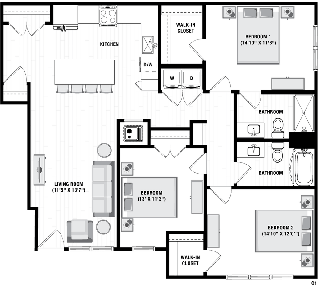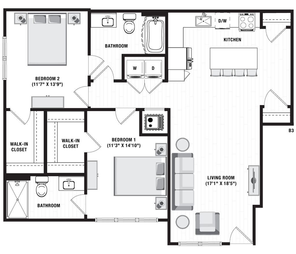1 Bed, 1 Bath, 950 sq ftAvailable Nov 4Largest 1 BedroomThis is the largest 1 Bedroom at this PropertyModel Gallery