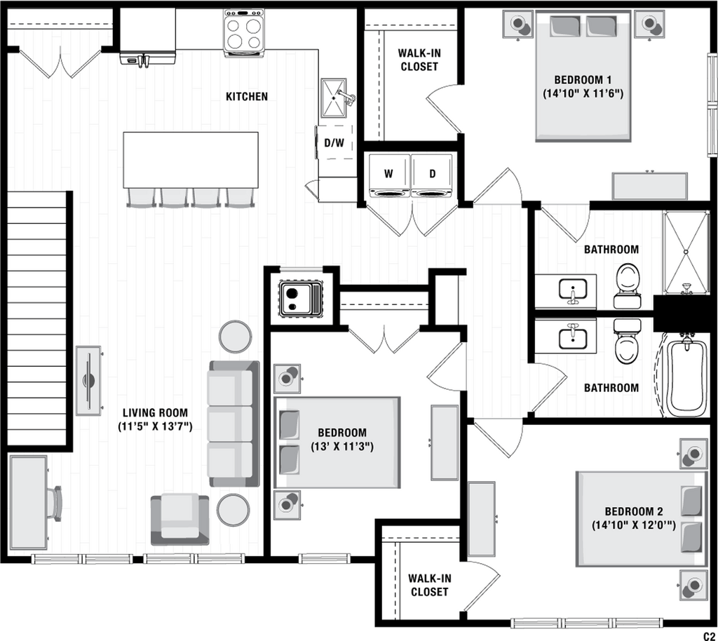 2 Beds, 2 Baths, 1092-1177 sq ftAvailable NowModel Gallery
