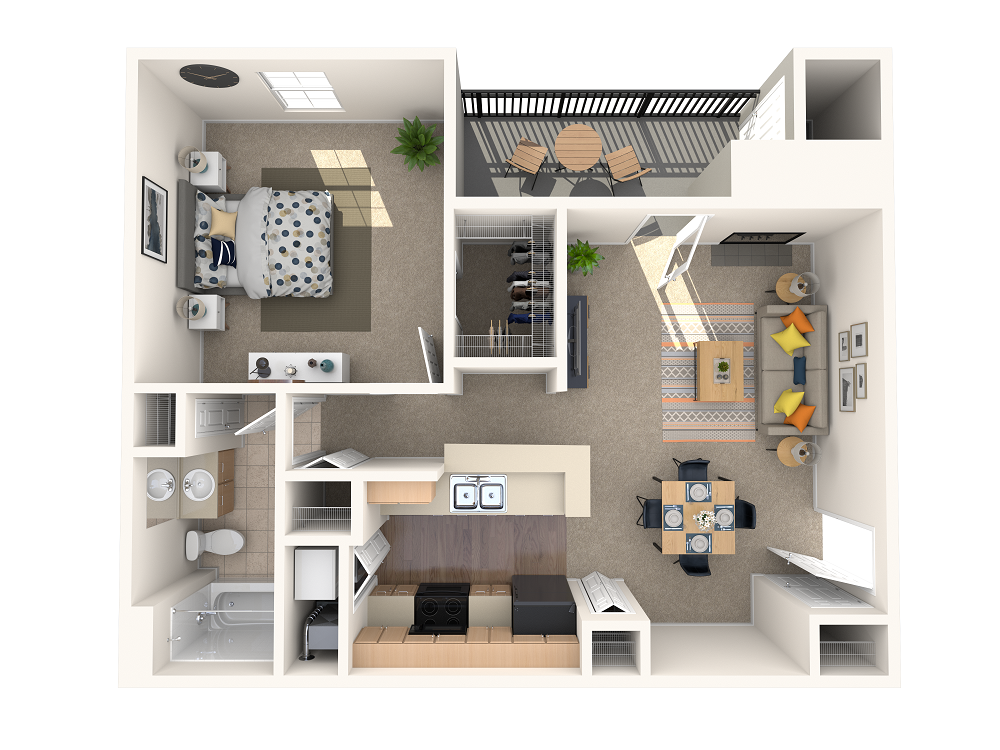 1 Bed, 1 Bath, 689 sq ftAvailable NowLargest 1 BedroomThis is the largest 1 Bedroom at this PropertyModel Gallery