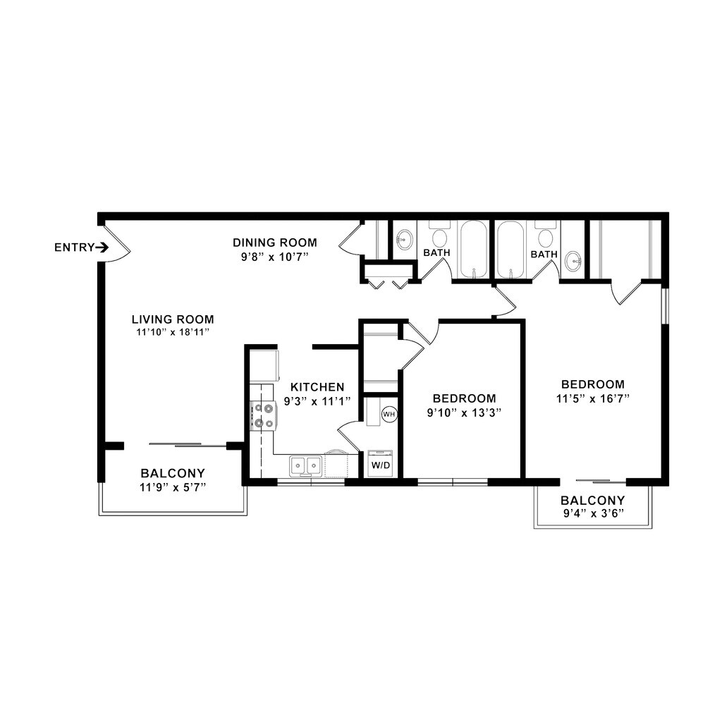 2 Beds, 2 Baths, 950 sq ftAvailable NowModel Gallery