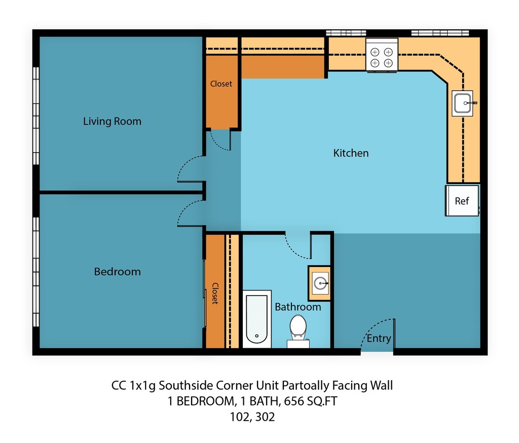 One Bedroom One Bath - Floorplan 10