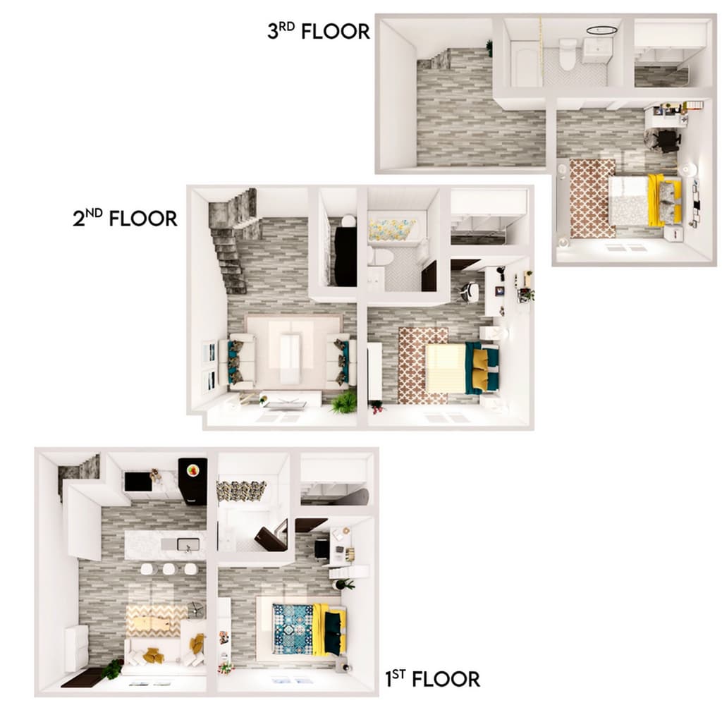 Apartment Model: 3BR/3BA - LUX$5403 Bedroom, 3 Bath, 1419 sq ftAvailable Now![]()