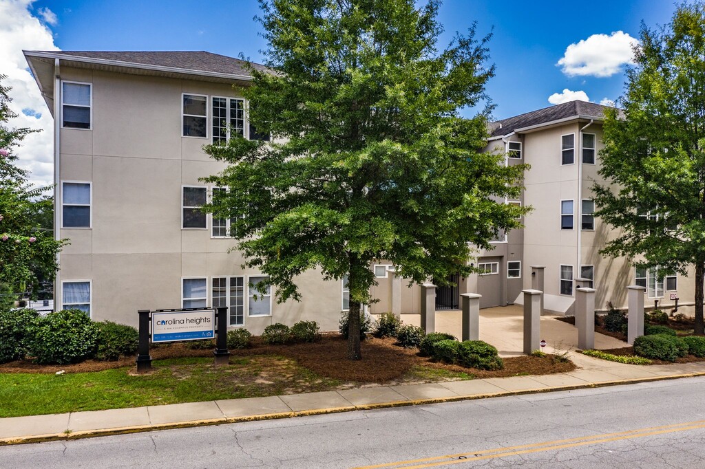 Located between campus and Five Points, these newly renovated apartments offer bright bedrooms and open concept living rooms. How does a 5 minute walk to class or a 5 minute walk to the Salty Nut sound? Carolina Heights is situated just steps from campus and offers 4 bedroom, 2 bathroom apartments. Renovated in 2020 to include quartz countertops, stainless steel appliances, and shaker cabinets, your apartment will be picture perfect! Football fan? You can see the shuttle for home games from your bedroom window!