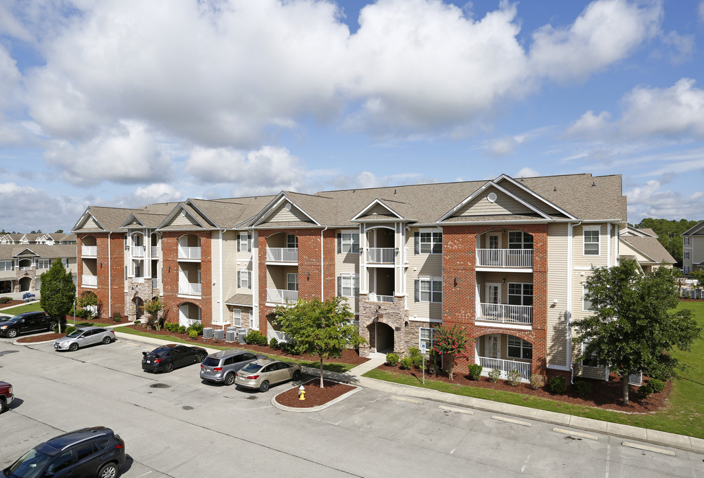 Our community is conveniently located on a quiet residential street within Carolina Forest. Carolina Place apartments feature well appointed one, two and three bedroom apartments. Each apartment home has its own stylish and smart appliances and modern conveniences. These include spacious walk in closets, intrusion alarms, and washers and dryers, as well as expansive patios. We have storage units and garages available additionally. Carolina Place boasts an easy commute to Camp Lejeune, Coastal Carolina Community College, area schools, shopping and dining. Even quick trips to the pristine waters of the Carolina Crystal Coast are just a short ride away. The elegant yet comfortable lifestyle at Carolina Place offers all the amenities of a resort. Relax your senses in the luxurious pool, cool off in the splash pad, or simply laze in the poolside cabana while utilizing the wireless internet. Enjoy a volleyball match with neighbors on our sand courts. Listen to the laughter of children as they play on our whimsical playground or cuddle up beside the outdoor gas fireplace lounge with your family or even a good book. Barbecue with friends in our picnic area complete with gas grills. Borrow from our DVD lending library, and even watch in our 20 seat theater. Accomplish your goals or simply surf the web from our media center. Tone up with our state of the art equipment located in our Fitness Center. Seek refuge in our outstanding spaces, tasteful architecture, and charming amenities.