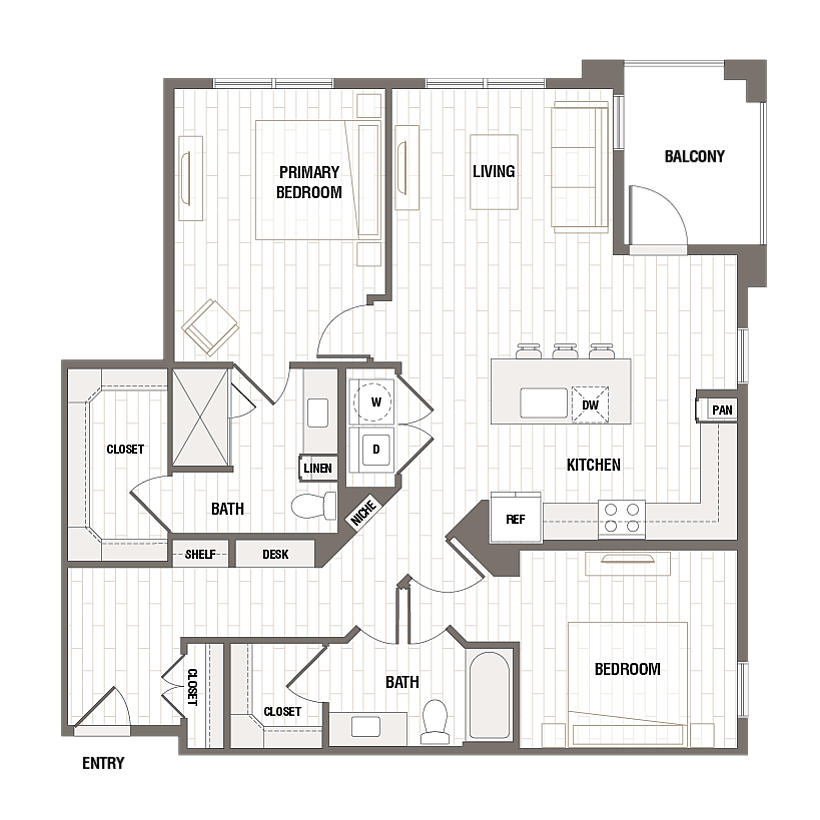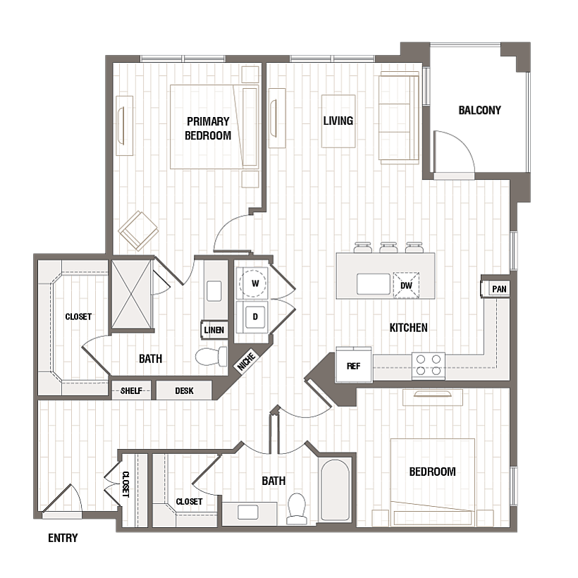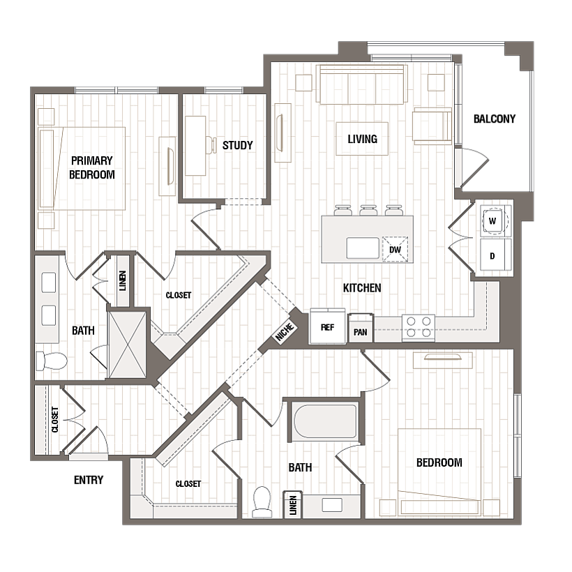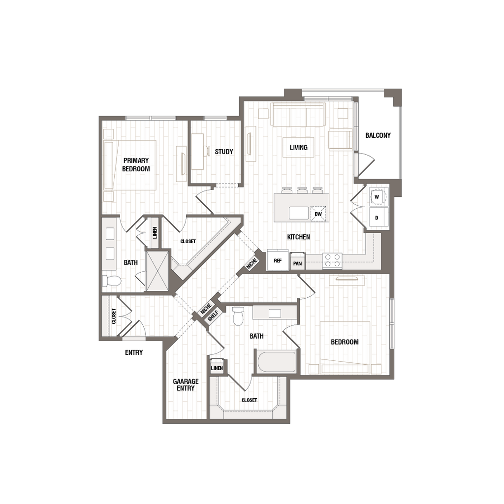 1 Bed, 1 Bath, 757 sq ftAvailable NowLargest 1 BedroomThis is the largest 1 Bedroom at this PropertyModel Gallery