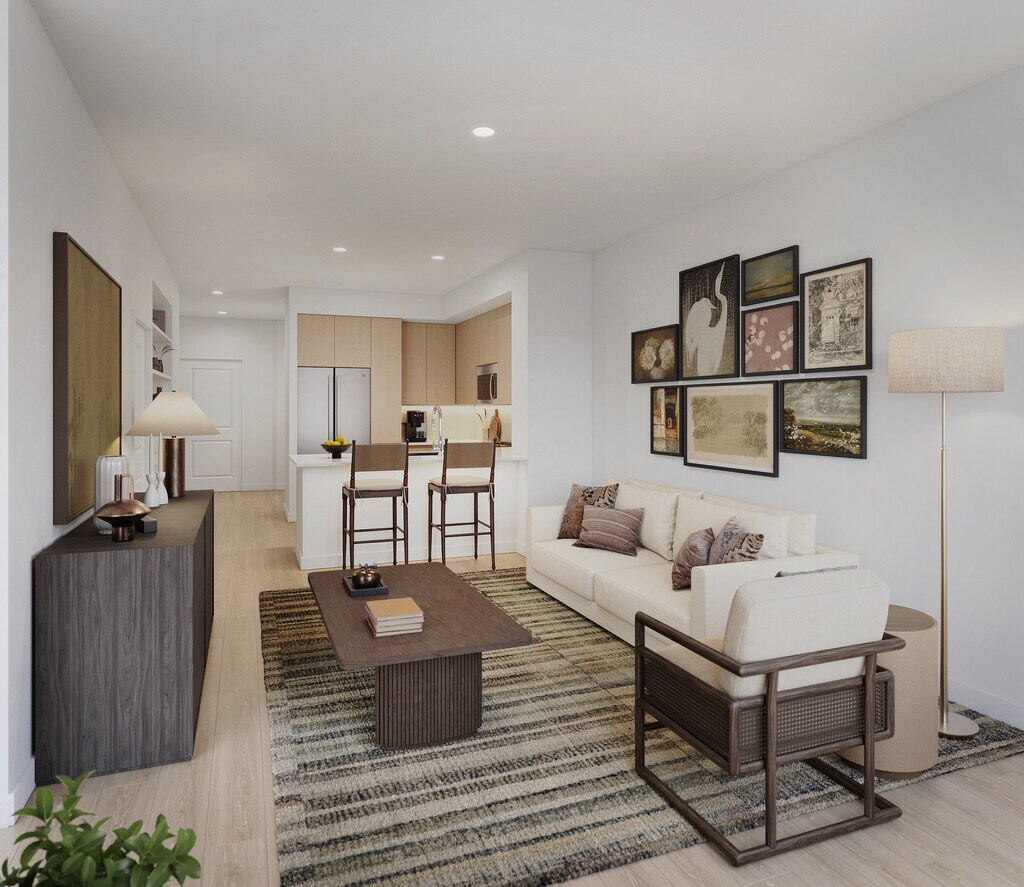 Choose from 18 thoughtfully designed floor plan options at Caroline Florence, featuring studio, 1- and 2-bedroom apartments that range from 568 to 1,165 square feet. Each residence showcases premium finishes including quartz countertops, stainless steel appliances, and LED lighting throughout. Our spacious closets provide ample storage, while modern European cabinets add sophisticated style to every kitchen.