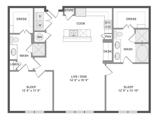 Apartment Model: A4.P8$1,4201 Bedroom, 1 Bath, 886 sq ftAvailable Now![]()