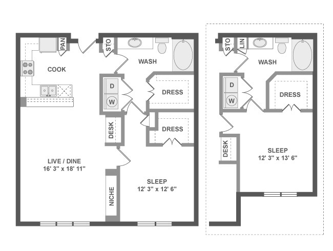 1 Bed, 1 Bath, 886 sq ftAvailable NowModel Gallery