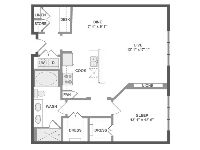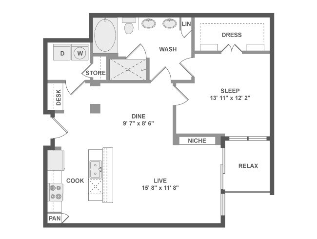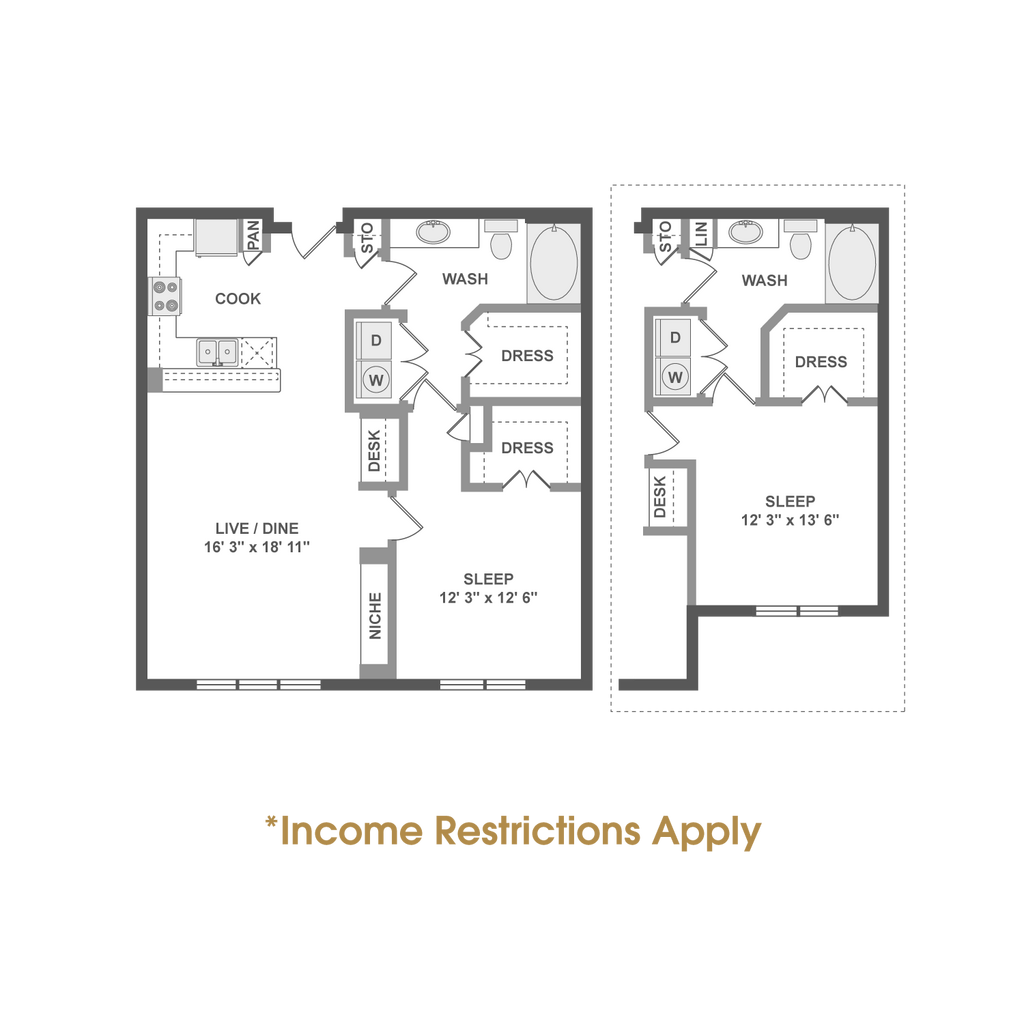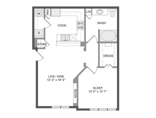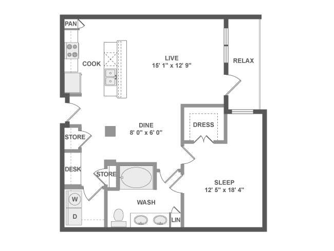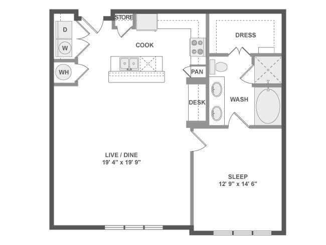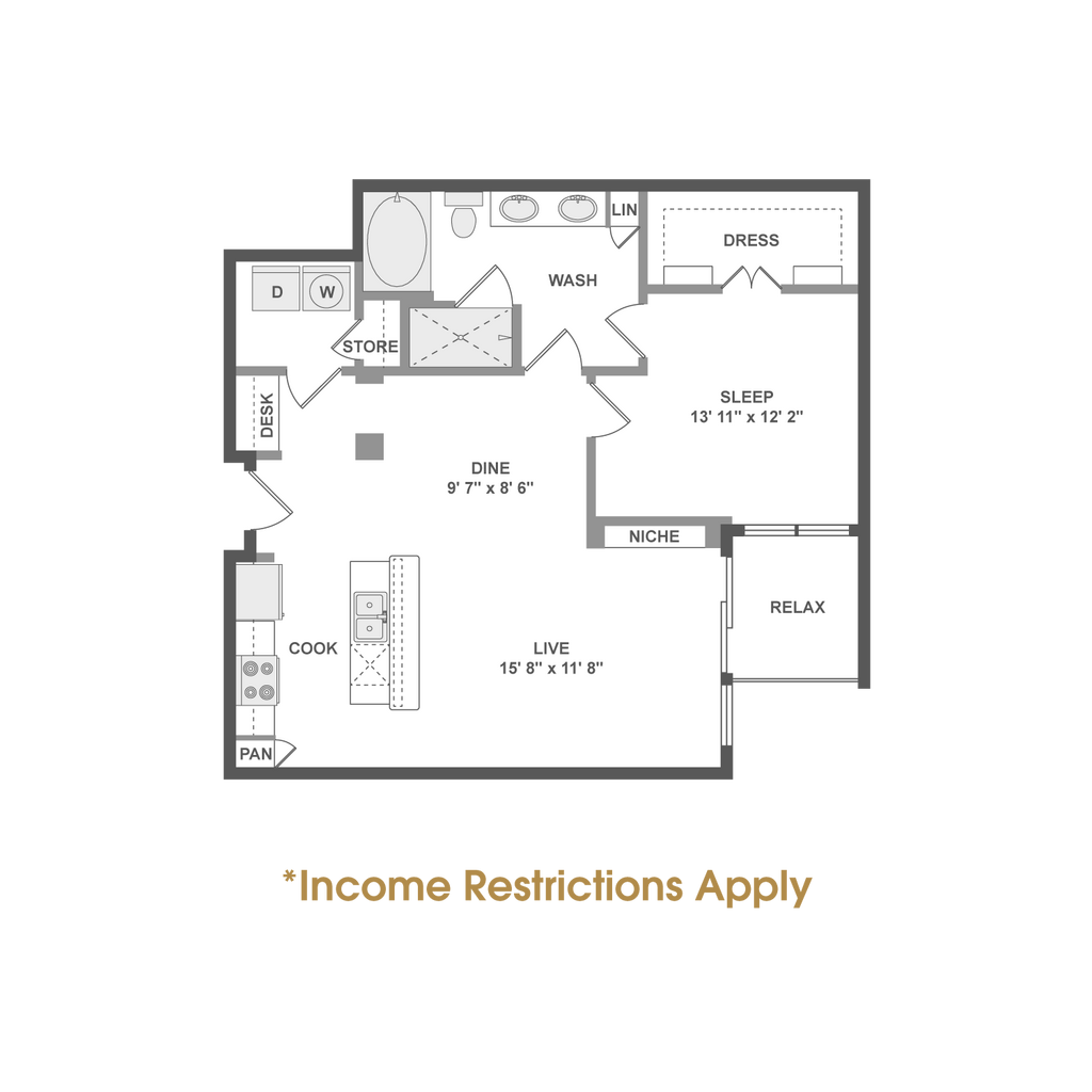 1 Bed, 1 Bath, 755 sq ftAvailable NowModel Gallery